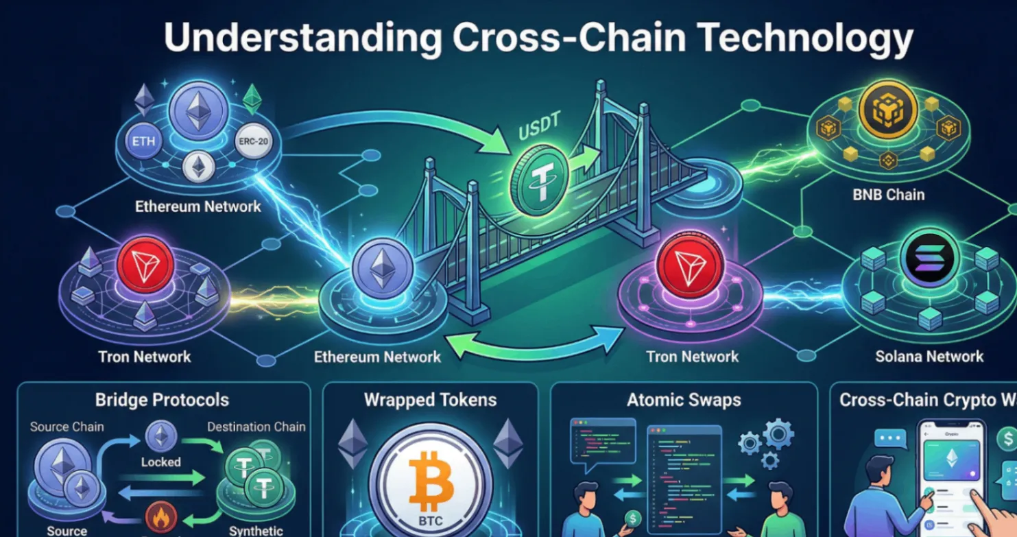 To illustrate why this matters, USDT is one of the most widely used stablecoins in the world, but it exists on multiple blockchains simultaneously, including Ethereum, Tron, BNB Chain, and Solana. Moving USDT from the Ethereum network to the Tron network is a cross-chain transaction. Without cross-chain capability, this transfer would require converting to another asset, sending to an exchange, converting again, and withdrawing to the destination network. Cross-chain technology enables this transfer to happen directly, with dramatically reduced friction.